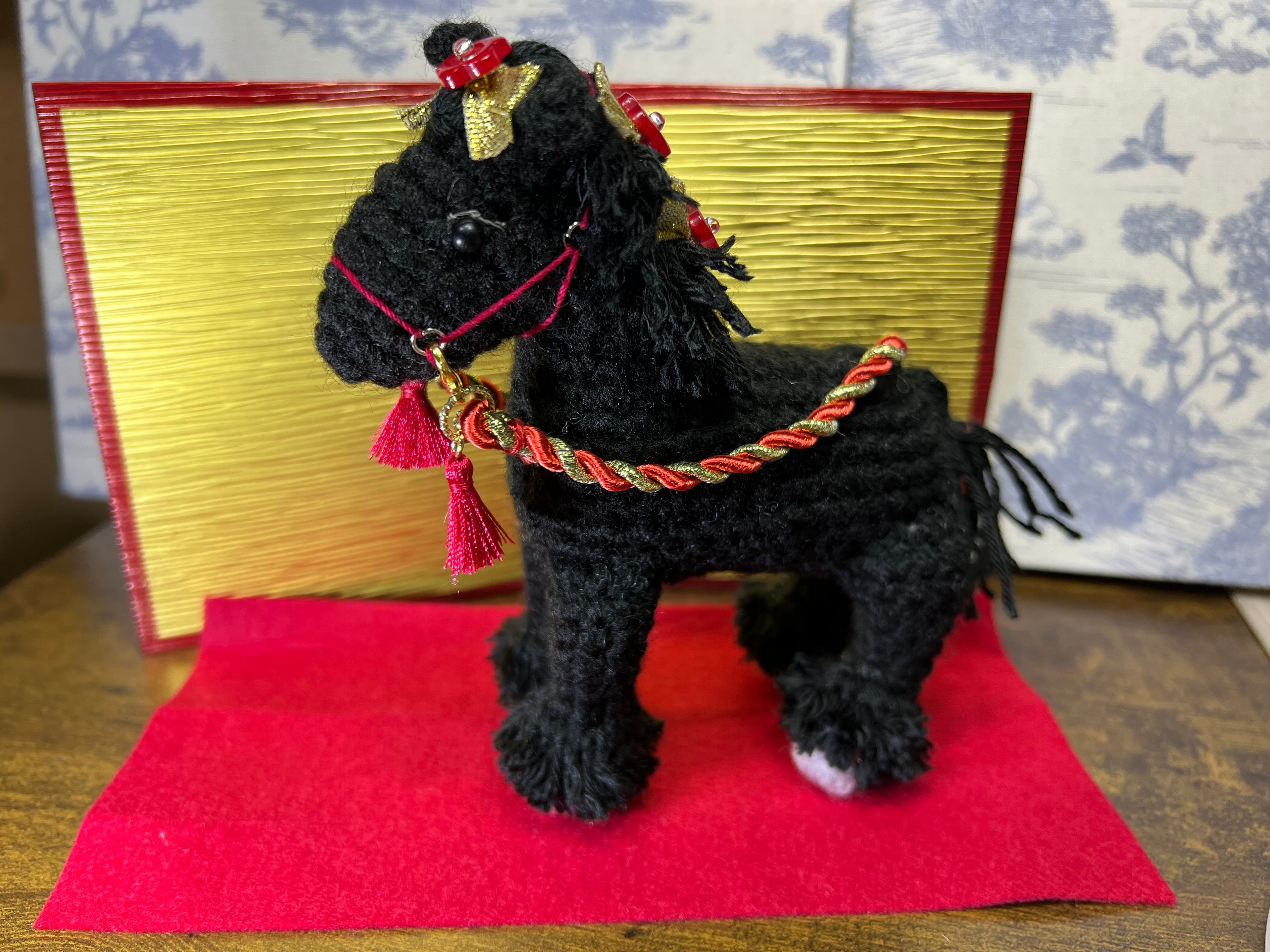 房付きの手綱、金屏風、赤いフェルト下敷きのセット